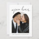 Börja den sortens bröllop som dina gäster verkligen ser fram emot – det här roliga ”Öppen bar” fotot för att spara datum på ett vykort låter dem veta att festen kommer, och ja, det blir drinkar. Den minimalistiska svart-vita designen håller det snyggt och modernt, medan den fräcka texten ”Öppen bar (och vi gifter oss)” tillför lekfull personlighet. Fullt anpassningsbar och tryckt på premiumkort, det här vykortet sparar datumet – och sätter tonen.
