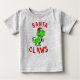 Bli lite tokig när du klär din bebis i denna roliga jul t-shirt för bebisar som säger "Santa KLOR" med en grafik av en grön Tyrannosaurus Rex dinosaurie som har en tomte hatt på sig och bär på en julpresent. Så söt och rolig för bebis första jul eller barn som älskar dinosaurier.