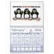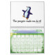 Rolig pingvinkalender. Varje sida har olikt att avbilda/tecknad av pingvin med roliga meningar. Garanterat för att sätta ett leende på ditt ansikte och för att göra dig att skratta varje månad av året. Texten kan ändras/skräddarsy. Framåt så går pingvinälskare, personifierar en kalender som du ska tycker om all årsrunda.