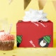 Rolig pingvintecknad som slår in papper för jul. Personalizable önskemål. Den gulliga pingvintecknaden med grönt stack hatten och personifierade julaftonhälsning. God jul! Beställnings- bakgrundsfärg.