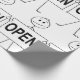 Ge dina gåvor ett humoristiskt twist med detta unika inpackningspapper som visar en pinnefigur som håller en skylt med texten ”ÖPPET”. Den enkla svart-vita tecknade designen ger en rolig och lättsam touch till födelsedagar, öppnanden eller någon annan speciell tillställning. Ett bra val för dem som älskar sällsamma och kreativa förpackningar med personlighet.