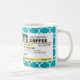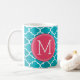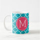 Rolig receptkaffe koppar med den beställnings- monogramen. Skriv ditt egna recept! Tillfoga ditt namn, din doktor, ditt favorit- kaffe och även dina egna anvisningar! Gör, om roligt, gör det din! Vit- och AquablåttQuatrefoil mönster. Tillfoga din egna beställnings- Monogram! Välj ditt egna typsnitt!