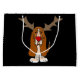 Den roliga hunden för Bassethundvalpen som ha på sig renhorn på kronhjort, och den original- konstjulen för röd näsa planlägger.