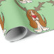Den roliga hunden för Bassethundvalpen som ha på sig renhorn på kronhjort, och den original- konstjulen för röd näsa planlägger.