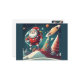 Rolig retro-jultomte i rymden julkort