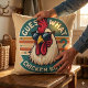 Denna djärva och humoristiska illustration visar en självsäker tupp som gungar med ett par coola solglasögon, mot en retroinspirerad bakgrund med varma vintagefärger. Den klassiska skämtet "Gissa vad? Kycklingbums" får liv med en western-möter-80-tals estetik, som blandar lantlig charm med lekfull nostalgi. Med sin slitna, solnedgångsrandiga bakgrund och djärva typografi har denna design en rustik men modern attraktionskraft, perfekt för dem som älskar humor om lantliv eller udda djurkonst. Blandningen av vintage Americana och lättsam komedi gör den idealisk för alla som njuter av en rolig, avspänd estetik med en touch av western cowboykänsla. AI-genererad konst.
