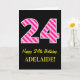 Rolig Rosa Randig "24"; Glad 24-årsdag; Namn Kort