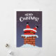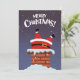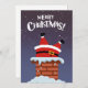 Rolig seriefigur jultomten fast i skorstenen julkort