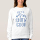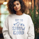 Rolig skidbachelorette-tröja med en teckning av vinterberg, träd, en skidåkare och det humoristiska uttrycket "upp till snö bra".