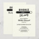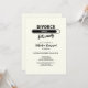 Denna inbjudan till skilsmässofest förvandlar en ”skilsmässa” till en anledning att fira. Mot en mjuk vit bakgrund ger den svarta serif-rubriken och en förloppsindikator precis rätt mängd humor, medan ”Låt oss festa” i en graciös scriptstil sätter tonen för fest. Framsidan innehåller anpassningsbara fstdetaljer i en snygg kombination av script och serif, och baksidan uppmanar gästerna att dela med sig av sina bästa tips för att överleva en skilsmässa. Ren, kvick och otvungen elegant – perfekt för alla milstolpar värda att fira.