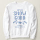 Rolig skidbrudströja med en teckning av vinterberg, träd, en skidåkare, det humoristiska uttrycket "upp till snö bra" och en textmall som är lätt att anpassa.