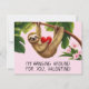På Alla Hjärtans Dag kan din kärlek ”hänga runt” med detta underbara kort med tema sengångare! Med den söta texten "Jag hänger runt för dig, kära" och en sengångare som hänger från ett träd och håller ett hjärta, är detta kort perfekt för att visa din speciella någon hur mycket de betyder för dig. Oavsett om det är för en partner, vän eller någon annan du håller kärt, är denna lekfulla design säker på att ge en leende och värma deras hjärta.