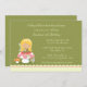 Denna bedårande 5x7 flickors födelsedagsinbjudan har ett sagotema. Det finns en saga med blondt hår som sitter på en svamp med en liten mus under. Bakgrunden är olivgrön med prickar. Botten har en krämfärgad scallopad kant med en rosa rand. Copyright © Zenware Designs