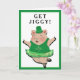 Söt St. Patrick's Day gratulationskort med rolig gris som dansar irländsk jig och en originell rolig dikt.