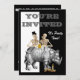 Roliga Steampunk gotiska skelett som dricker på en vintage Noshörning, med en klassisk svart-vit bakgrund. Perfekt för Alternativ, viktoriansk, gotisk, steampunk, motorcykel, rock tema födelsedag, svensexa, examen, fester. Anpassa enkelt all text för att skapa en unik personlig inbjudan till din händelse. Besök LEATHER_AND_LACE-butiken för matchande produkter och fler Alternativ, bröllop och festgåvor och produkter.
