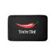 Rolig svart bathmat med den glödheta chilipepparsymbolen. Kryddig matdesign med vintagetypografimallen. Tillfoga ditt egna personlignamn, monogram eller humoristiska citationstecken/ordstäv. Gullig gåvaidé för nytt hem. Passande för manar och kvinnor. Beställnings- matta för badrum eller vått rum.