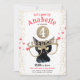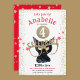 Den här glänsande festinbjudan är perfekt för att fira en kids födelsedag med vänner och familj. Designen har en charmig akvarell svart katt prydd med lekfulla, festklara, falska glitterglasögon i guld, mot en strålande vit bakgrund prydd med glänsande guldornament. Baksidan är en livfull röd, prydd med glitterstjärnor i guld. Inbjudantexten är skriven i lekfull, modern röd och svart anpassningsbar typografi, så att du kan anpassa den till din unika fest. Gör den till din egen och glöm inte att kontrollera de tillgängliga färgvariationerna för att skapa en minnesvärd katt-tema födelsedagsfest!