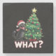 Rolig svart katt vad Xmas julgran Stenunderlägg