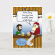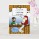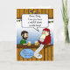 Roligt tackkort för julklapp till en pojkvän som har ett RAP a.k.a. brottsregister så långt som en mil. Killen ser orolig ut men det ordnar sig till slut. Digital illustration som visar en kille och tomte med öl på baren. Konst, bild och vers copyright © Shoaff Ballanger Studios, 2023.