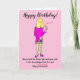Rolig teckning av en kvinna som inte har klippt håret sedan nedstängningen som håller i en flaska vin och ett vinglas för att fira sin födelsedag. Bildtexten lyder 'Grattis på födelsedagen' och 'Namn fick sin Covid-vaccin och var trygg i vetskapen om att hon var fullständigt berusad (Inokulerad är överstruken)'. Kortet har en rosa bakgrund och kvinnan bär en rosa klänning. Anpassa enkelt detta kort genom att redigera malltexten. Tack för att du tittade på mina tecknade design!