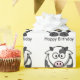 Rolig tecknadko med rosa näsgrattis på presentpapper