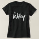 En rolig design för bruden, nygift eller erfaren fru, denna mörka t-shirt-design har handskriven borsttypografi som stavas "the Wifey" i vit text. Det är ett bra val för efterbröllop, din smekmånad eller hemma eller på språng i din dagliga rutin. En matchande design finns också tillgänglig för brudgummen med texten "the Hubs" i samma typsnitt.