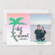 Skicka varma önskningar denna högtid med dessa roliga tropiska julkort. Kortens text är ”låt det snöa… någon annanstans” med en ljus palmträdsgrafik och slinggjord belysning. Lägg till ditt eget foto och namn.