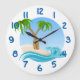 Den roliga stranden och den tropiska väggen för palmträd tar tid på