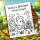 Söt vuxen målarbok för barn, tonåringar eller vuxna, Enkla tjocka linjer för att göra färgläggning enklare. En söt tupp på en gård och en rolig kyckling puns citat, "Ha en kluckande bra dag".