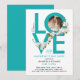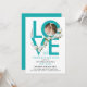 Rolig turkos kärleksfirande manus foto blommig inbjudningar