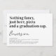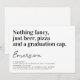 🎉🎂 Bjud in vänner och familj att fira en examen med denna roliga typografi festinbjudan. Texten lyder "Inget fancy, bara öl, pizza och en examenshatt."
