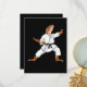 Rolig vanlig leopardgecko som gör karate samuraj tack kort