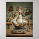 En humoristisk kyckling sitter med korslagda ben i en stekpanna, i en lugn meditationspose omgiven av en mysig köksmiljö. Med glasögon och en fridfull energi blandas absurditet med stillhet. Varmt ljus och detaljerade omgivningar skapar en lekfull kontrast som förvandlar en vardaglig tillagad moment till en sällsam, fantasifull visuell berättelse.