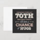 Rolig 70-årsdagscitat med humoristiskt uttryck som Helgprognos 70-årsfest Med Chans Till Kramar. Glad 70-årsdag för att fira födelsedagen för dina nära och kära, till exempel din mormor, morfar, far, mor, farbror eller faster. Presentidé för 70-årsdag.