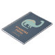 En super söt anteckningsbok för ett barn med en illustration av en dinosaurie i blekt blått och orange, på en marinblå bakgrund. Den redigerbara titeln lyder "Fantastiska Anteckningar". Anpassa med barnets namn. Detta gör en bra present inför skolstarten.