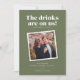 Detta roliga bröllopskort för att spara datum har frasen "Drinkarna är på oss - baksmällan är på er" - säkert att ge dina gäster en skratt och en förhandsvisning av den roliga bröllopsfesten de inte vill missa. Anpassa det! Ändra färger och typsnitt för att matcha din bröllopsstil!
