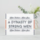 Det här roliga fadersdagskortet i rött och blått med citatet "Lika far, lika son. En dynasti av starka män" är perfekt för din son på fadersdag. Detta moderna typografiska kort är designat för att påminna din son om var hans styrka kommer ifrån, på denna vackra dag som hedrar alla fäder runt om i världen. Glad fadersdag !