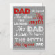 Glad Fars dag Kort : Detta citat faders dag kort i rött och grått med citatet "Pappa. Mannen. Myten. Legenden." är perfekt för faders dag. Detta pappa-kort är designat för att visa din tacksamhet på denna vackra dag som hedrar alla pappor runt om i världen. Gör honom stolt ! Glad fars dag !