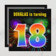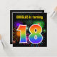 Den här roligten har en sjudande födelsedagsfest inbjudan-design med ett färgstarkt mönster som inspireras av brinnande högtalande fyrverkerier, tillsammans med siffran 18 med en flerfärgad regnbåge som spektrum eller mönster med övertoning. namn på framsidan kan anpassas. Baksidan innehåller information om anpassadet om party. Födelsedagsfest inbjudan som detta skulle kunna användas till gäster från inbjudan till en födelsedagsfest som hålls för att fira någons artonde födelsedag. [~Z0000337]