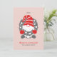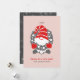 En söt tomte från nordisk folkdiktning pryder detta söta högtids- och firandekort i röd och grå ton mot en ljus rosafärgad bakgrund.