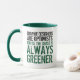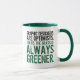 Tillsätt en touch av nyckfullhet till din favoritdryck och skålning med denna mugg, som visar den humoristiska iakttagelsen "Grafiska designers är optimister. För oss är gräset *alltid* grönare." Som grafisk designer har jag många gånger fått frågan "är det verkligen så [ange din färg här]". Det egentliga skämtet/den underförstådda anspelningen (med flit) / antydningen här är "övermättade du dina primärfärger?". Den perfekta "nyhets"-muggen för bilderbajsnissar!