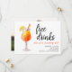 Vi presenterar de perfekta "save the date"-kort för det moderna, roliga paret som inte kan vänta med att fira sin bröllsdag med familj och vänner! Vår roliga design med "Gratis drinkar" fångar andan av er kommande fest och tillför en touch av humor på er speciella dag. Dessa färgglada cocktail-tema kort är ett underbart sätt att bjuda in era nära och kära. De har en personlig design som visar er bröllopsdetaljer och kan till och med innehålla ert förlovningsfoto på baksidan. Detta lägger en personlig och sentimental touch till korten, vilket gör dem verkligen unika för er kärlekshistoria. Med en avslappnad och rolig känsla sätter dessa "save the date"-kort tonen för en oförglömlig bröllsupplevelse. Kombinationen av livfulla färger, humor