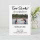 Vi presenterar vår roliga "Gratis Drinkar" Save the Date-kort! Fängsla dina nära och kära med denna förtjusande och unika inbjudan som utstrålar stil och charm. Med en bild på framsidan, med en slående fotobild och en fängslande typsnittsdesign, fångar den vackert essensen av din speciella dag. Mot en krispig vit bakgrund sticker den svarta texten ut elegant och skapar en visuellt tilltalande kontrast.