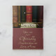 En söt ordlek, kortet säger "Grattis"EXAM"en. Har en bild av en bokhylla med gamla klassiker och har en enkel trimning. Inuti står det "Du är nu officiellt smartare än jag. Gjort i färgerna burgundy och guld.