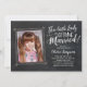 Skrivar roliga inbjudningskort för möhippan för gammalt foto med ett handskrivet svart tavladesign. De uttrycka något att säga: "Är denna lite dam gifta sig". Upload ett gammalt foto av den framtida bruden, de lika old schoolfotona eller en annan barndombild. Justera formatet, filtrerar vintage, och skörden av varje foto som behövd. Skräddarsy uttrycka till passformen en brud- luncheon, en brud- frunch eller någon themed möhippa.
