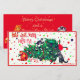 Sött katter älskare julkort. Katter rolig konst. Bara vill ha kul text med förstörd julgran kullvält på golvet av tre stygga katter. Konfetti i bakgrunden med röd ram. Ditt namn alternativ. Konstverk av PatriciaVilla.