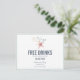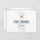 Roliga bröllop spara datum vykort i en akvarell sjöstjärna och korall strand design som läser "Gratis drinkar (och vi gifter oss)". Anpassa med din bröllopsinformation på framsidan och baksidan av vykortet. Dessa är perfekta för alla par som planerar ett strandbröllop.