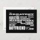 "Den bästa, mest fantastiska, underbara, härliga, magnifika, super, fantastiska, suveräna, briljanta Pojkvännen i världen ....någonsin!" är en rolig present till pojkvänner: presenterad i svart text på vit eller vit text på svart, med en iögonfallande kombination av en mängd olika typsnitt. En rolig, originell present för att fira din kärlek till din nummer ett Pojkvän, på deras födelsedag, julen, Alla hjärtans dag eller helt enkelt för att få din Pojkvän att känna sig speciell.