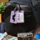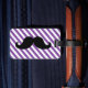 SNYGGT ROLIG MUSTASCHBAGAGEMÄRKRE. SVART MUSTASCH MED LILA- OCH VITRANDMÖNSTER. "MIG MUSTASCH DIG SOM GÅR MITT BAGAGE TILLBAKA". MOVIEFUN© för andra färger av mustasch- eller bakgrundsrandmönster behar kontaktlagret.