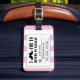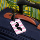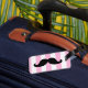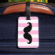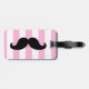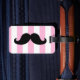 ROLIG MUSTASCHBAGAGEMÄRKRE. SVART MUSTASCH MED DET SÄTTA EN KLOCKA PÅ FLICKAKTIGT ROSA- OCH VITRANDMÖNSTER. "MIG MUSTASCH DIG SOM GÅR MITT BAGAGE TILLBAKA". MOVIEFUN© för andra färger av mustasch- eller bakgrundsrandmönster behar kontaktlagret.